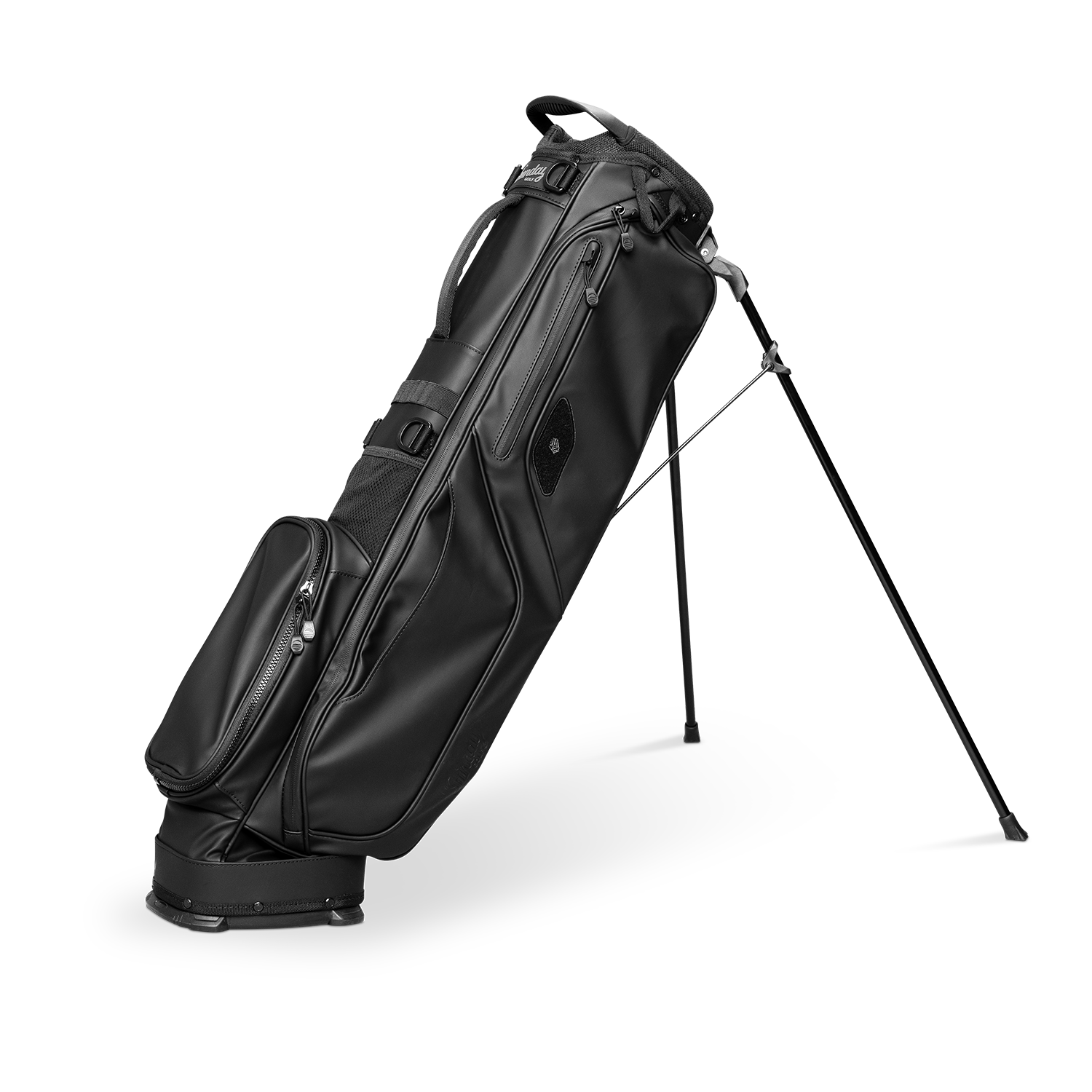 - A flat base, padded self-balancing shoulder straps, and plenty of pocket space for anything you could need on the course make this the perfect leather golf bag