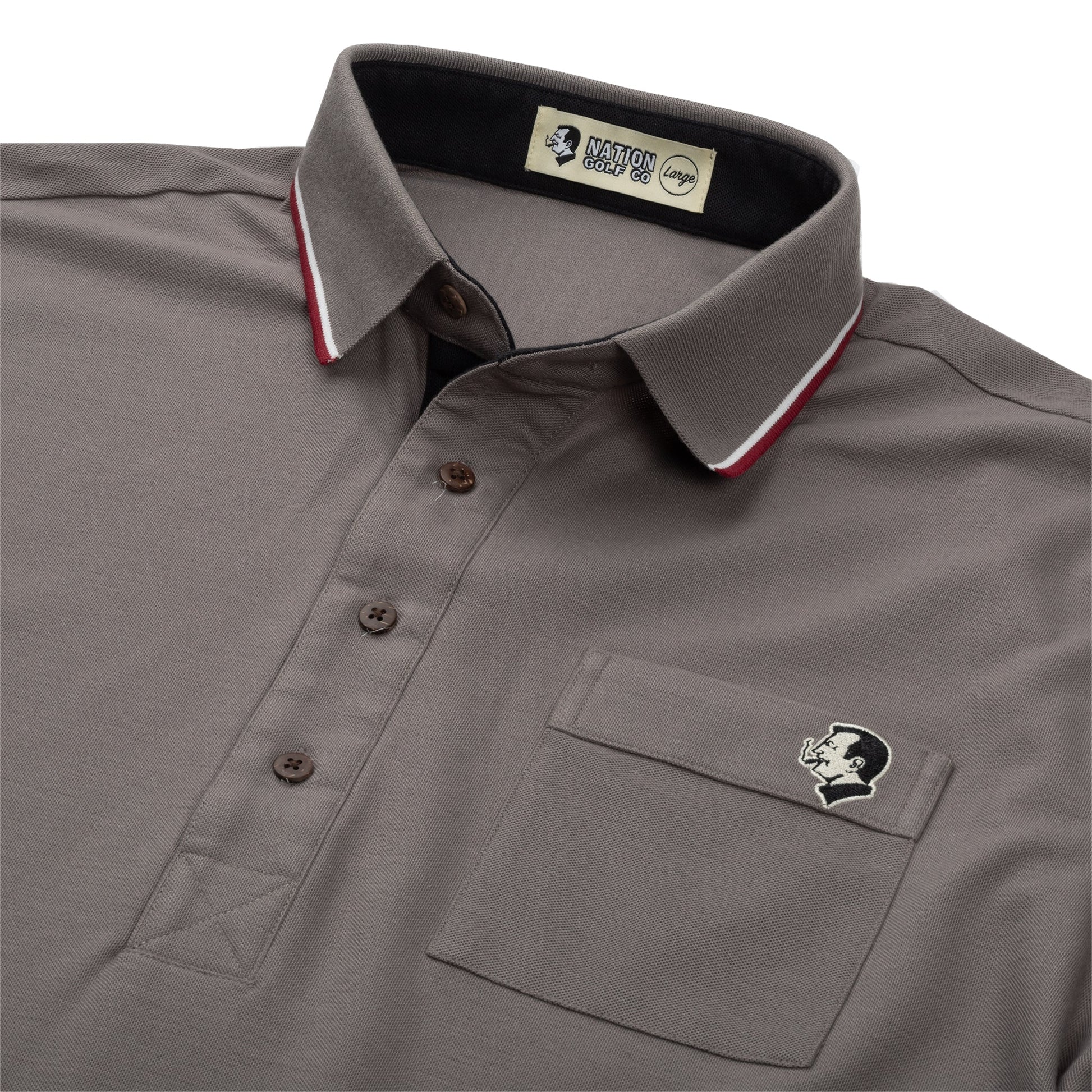 Soft, breathable, 50/50 blend cotton-poly pique. Flexible 1:1 rib collar with dual stripe accents on a contrast collar stand for the classic Nation look. A timeless workhorse of a golf polo.